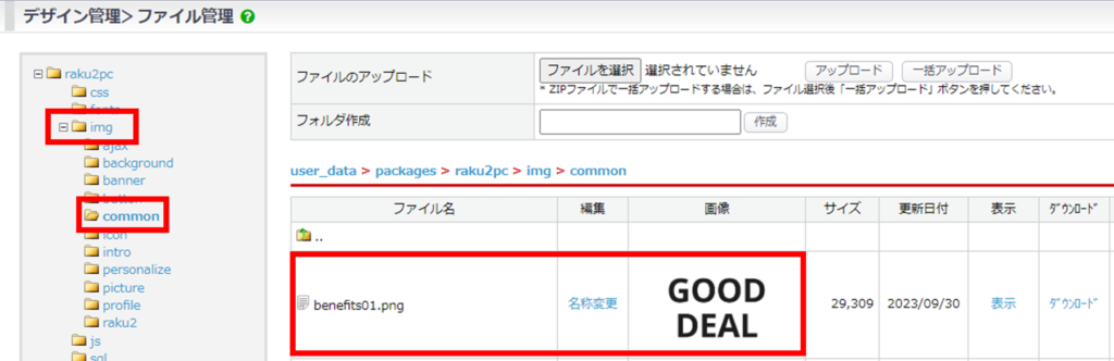 画像: デザイン管理(PC/SP) > ファイル管理 > [img]フォルダ > [common]フォルダ