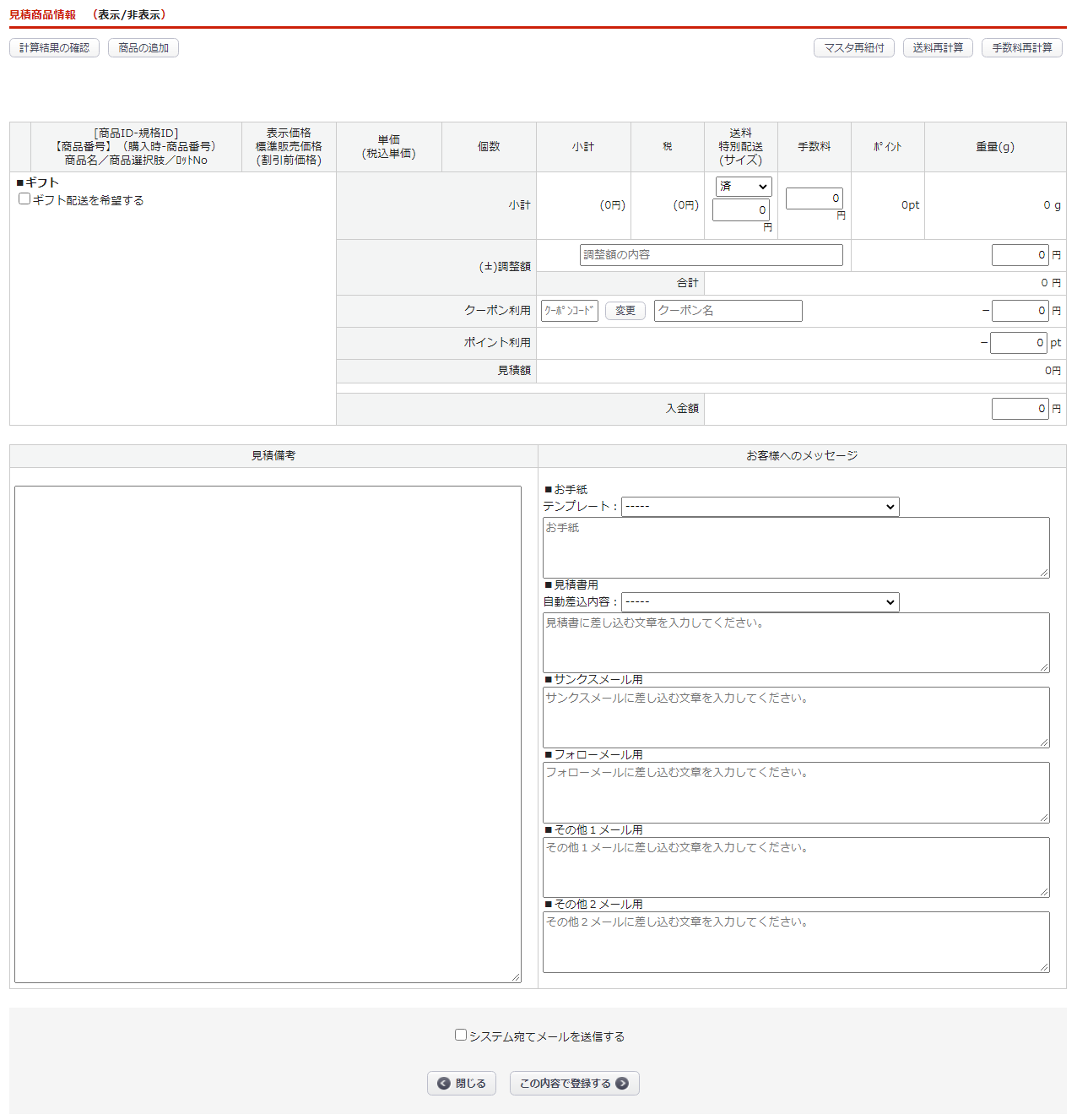 見積商品の登録