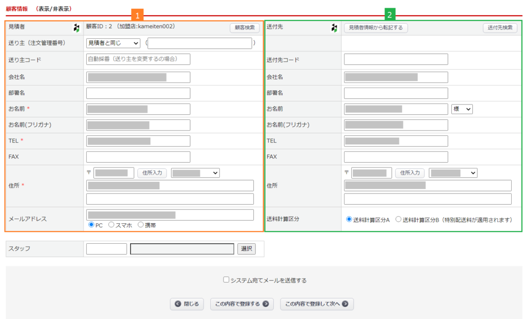 | 1 | 見積者 | 見積依頼者(加盟店)情報を表示します。 |