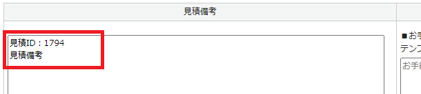| 顧客備考 | 見積に紐づく加盟店の顧客備考に登録されている内容が表示されます。 |