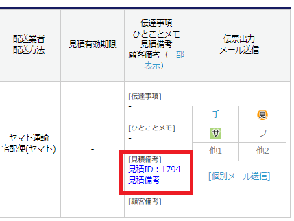 見積番号の詳細