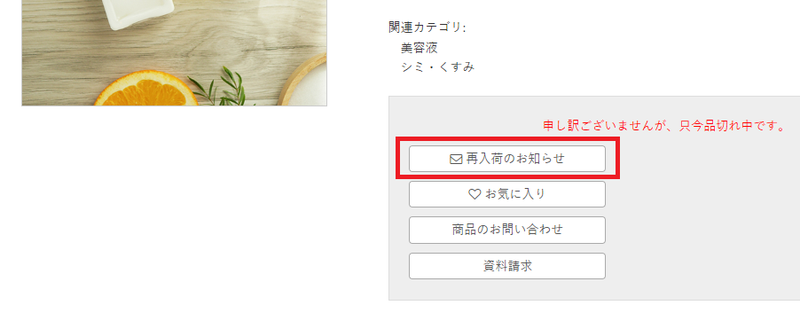 有効在庫数が0の場合のみ【再入荷のお知らせ】ボタンが表示されます。
