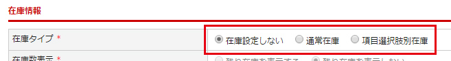 【在庫タイプ:”項目選択肢別在庫”の場合】