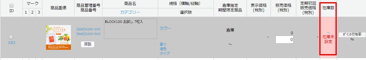 在庫情報の在庫タイプを設定後、