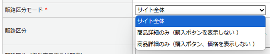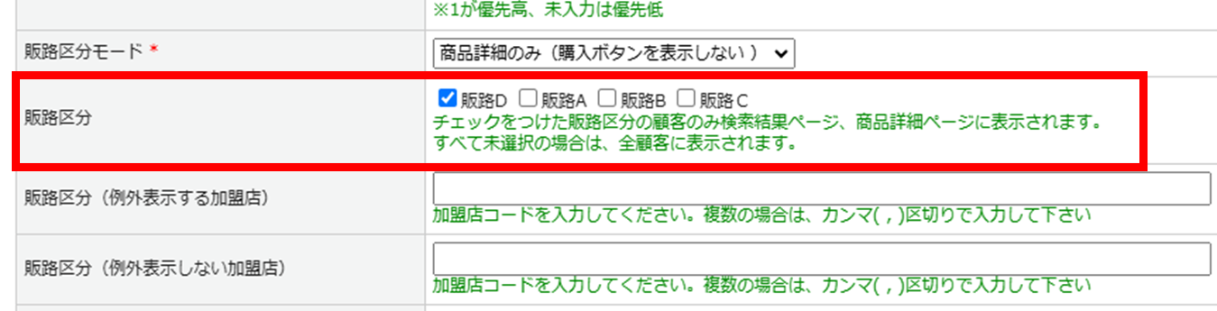 当該商品を購入可能にする販路区分を指定します(複数選択可能)。