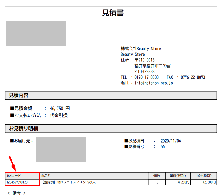 <見積書:JANコード>