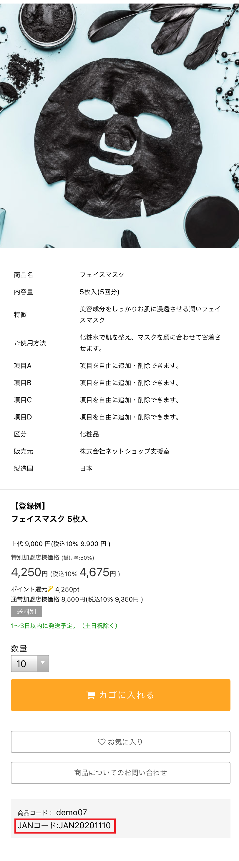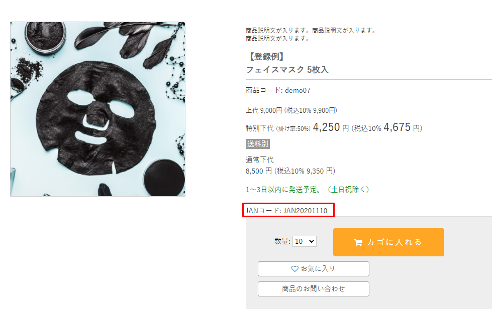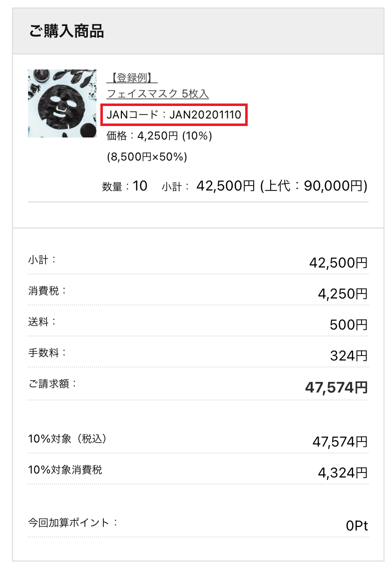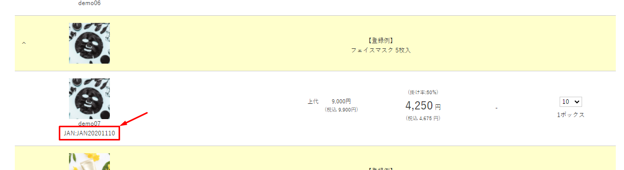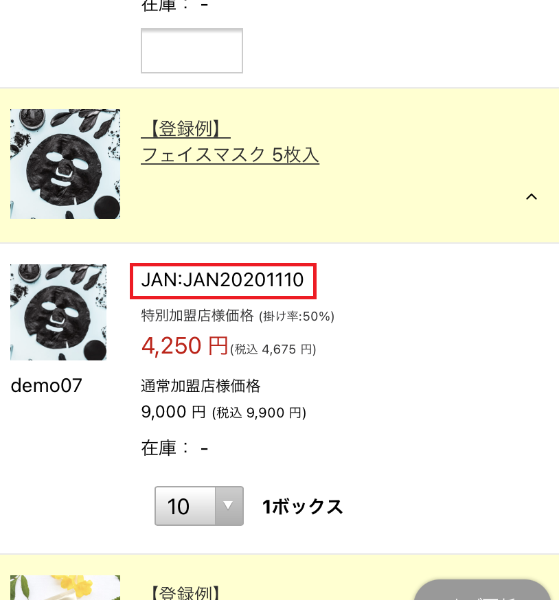 商品詳細ページや納品書等の伝票で、JANコードが設定されている商品の表示有無を設定できます。
