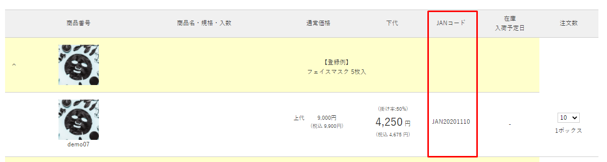 <JANコード選択時>