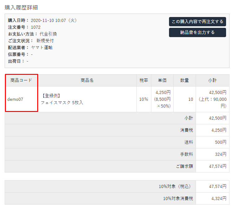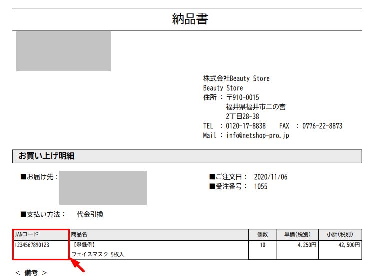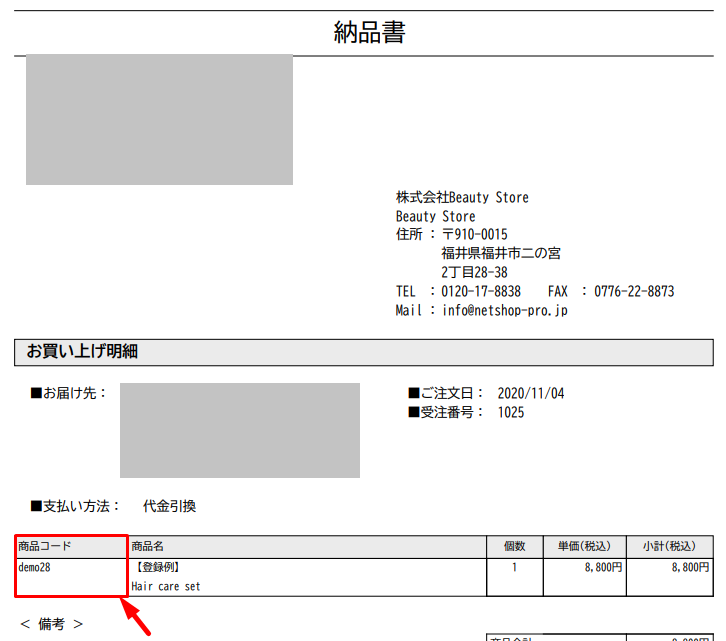 <納品書:商品コード>