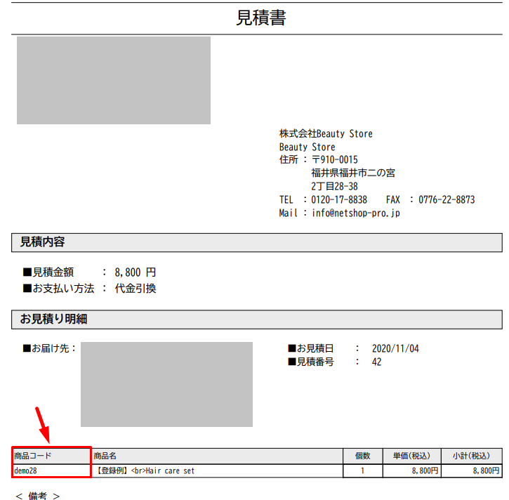 <見積書:商品コード>