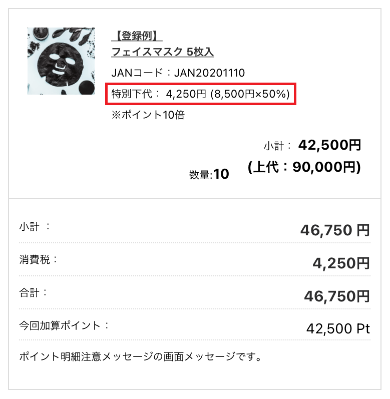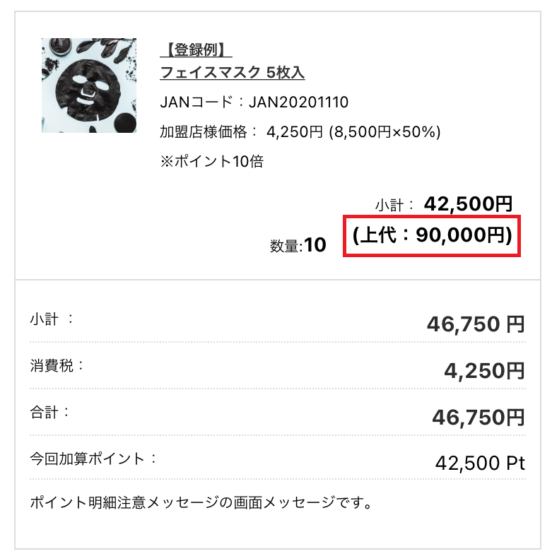 また、割引がある場合は、販売価格が「加盟店価格」となり割引き価格が表示されます。