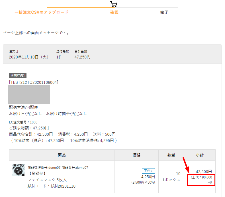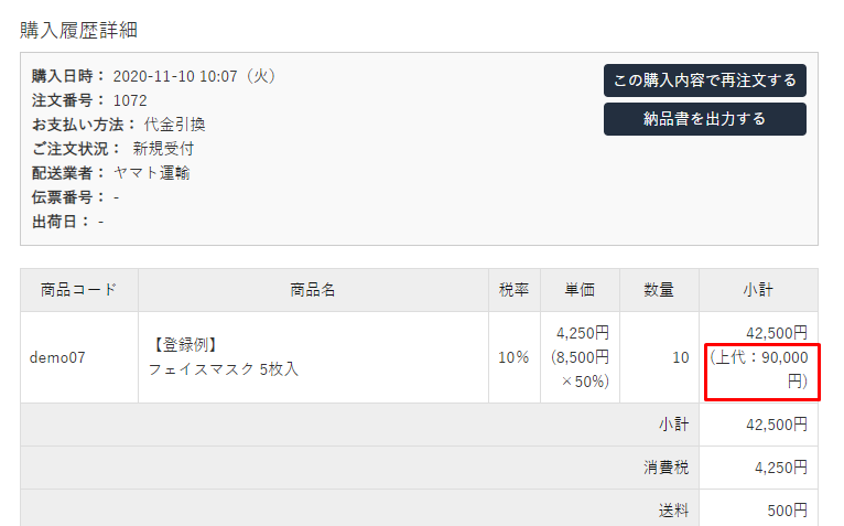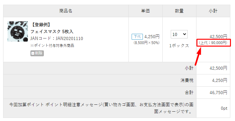 ”表示する”を選択した場合、小計欄に表示価格と二重価格文言を表示します。