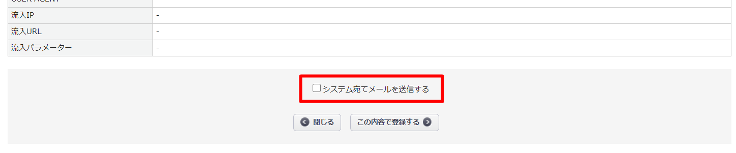 【この内容で登録する】ボタンの上に、「システム宛てメールを送信する」が表示されるようになります。