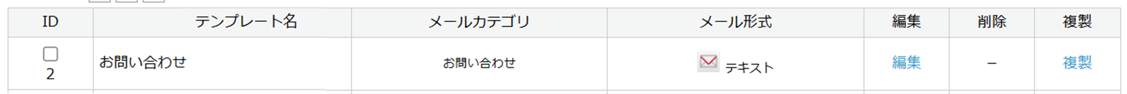 IDメールテンプレートの新規登録時に自動で付与されるID番号