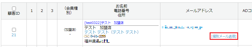 また、顧客>顧客一覧 の[個別メール送信]から手動で送信することも可能です。