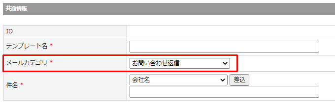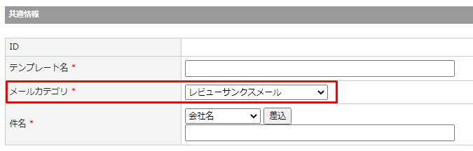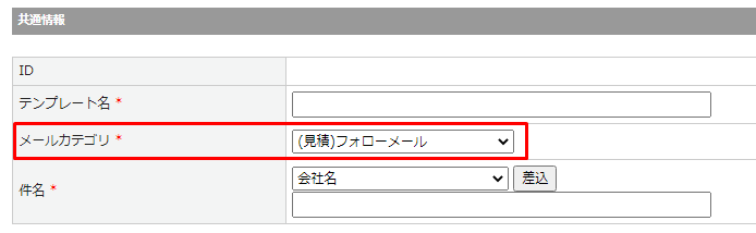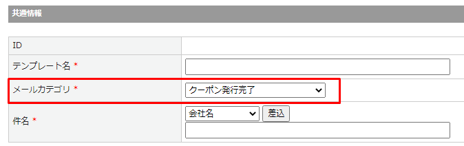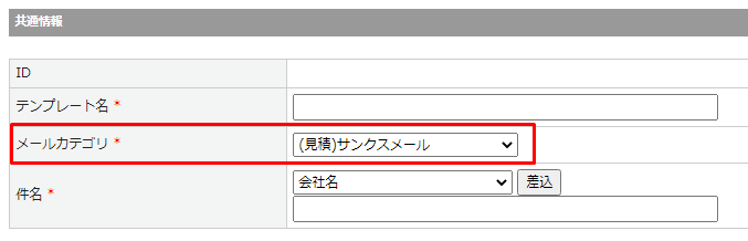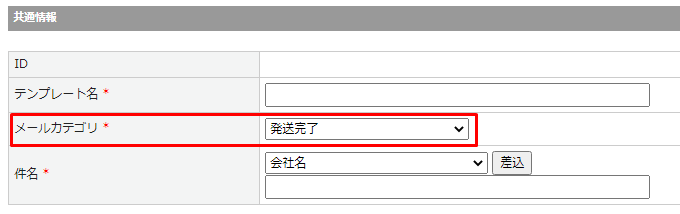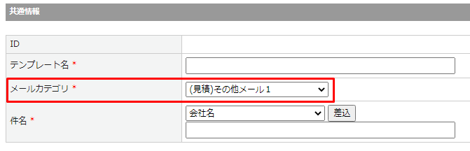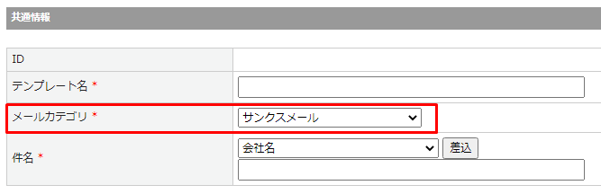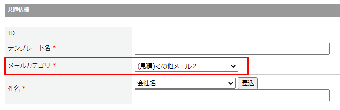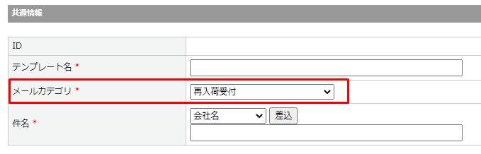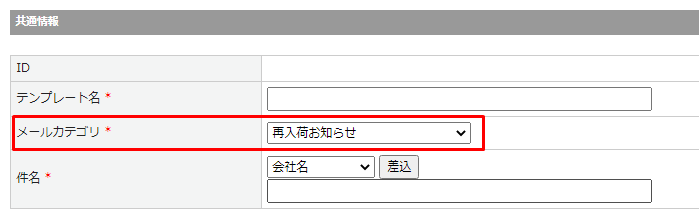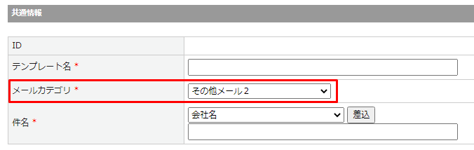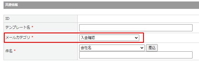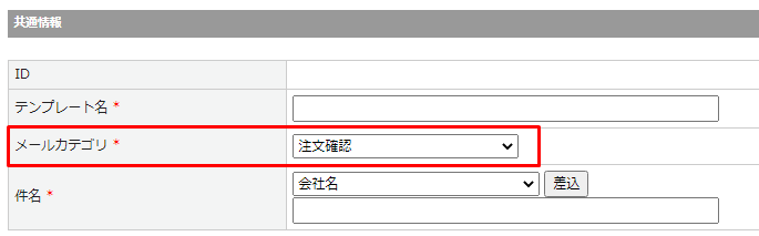 メールテンプレートの利用用途に合わせてメールカテゴリを設定します。
