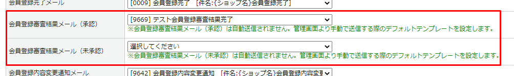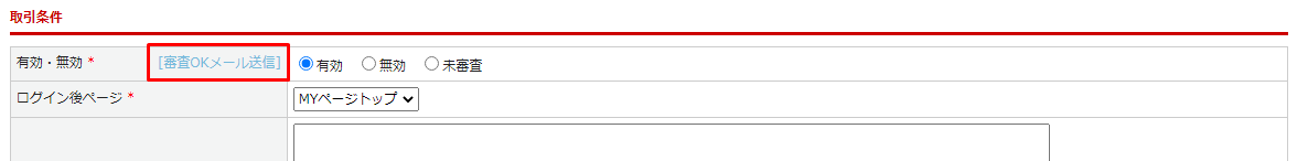 有効の場合、[審査OKメール送信]が表示され「会員登録審査結果メール(承認)」が、