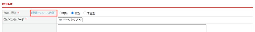 無効の場合、[審査NGメール送信]が表示され「会員登録審査結果メール(未承認)」が送信されます。