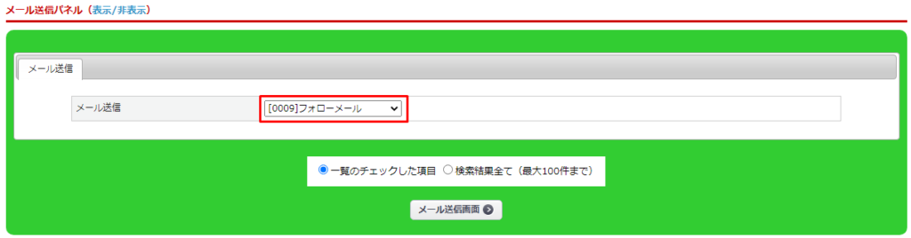 ”フォローメール”は、受注>受注一覧 の[個別メール送信]、または、メール送信パネルから送信することができます。