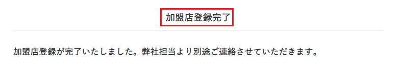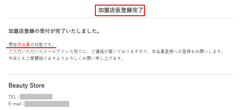 フロントからの加盟店登録時に、仮会員→本会員という加盟店登録フローを設定している場合に送信するメールです。