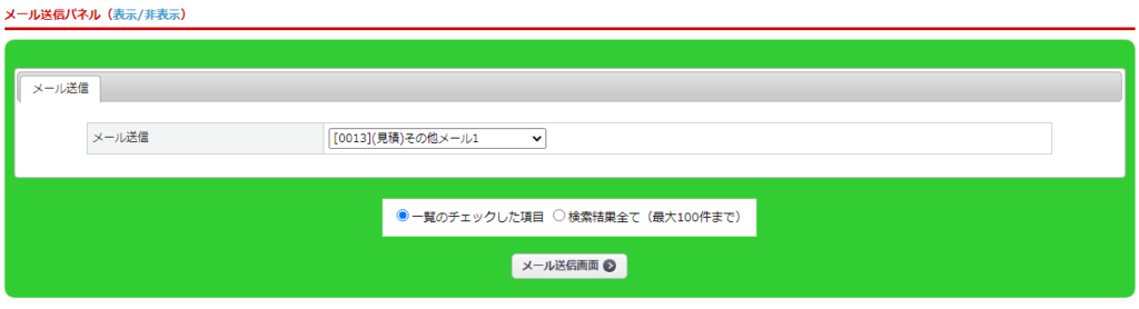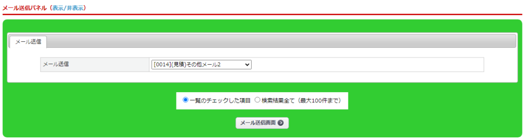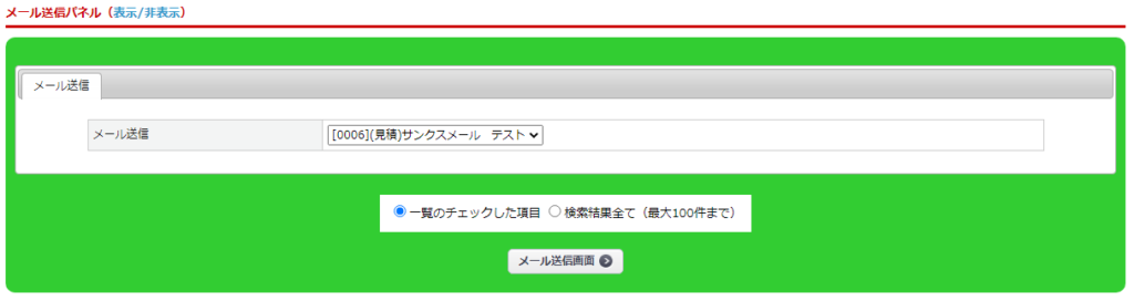 ”サンクスメール”は、見積>見積一覧 の[個別メール送信]、または、メール送信パネルから送信することができます。