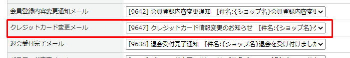 カートシステム設定>メールテンプレート設定 で、クレジットカード情報を変更した際に送信するメールテンプレートを設定することで、メールが自動送信されます。