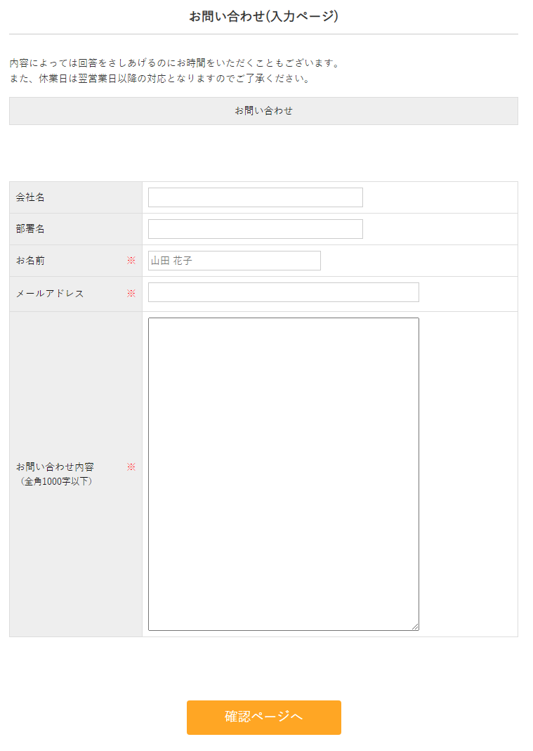 フロントの「お問い合わせ」からお問い合わせを受け付けたときに送信するメールです。