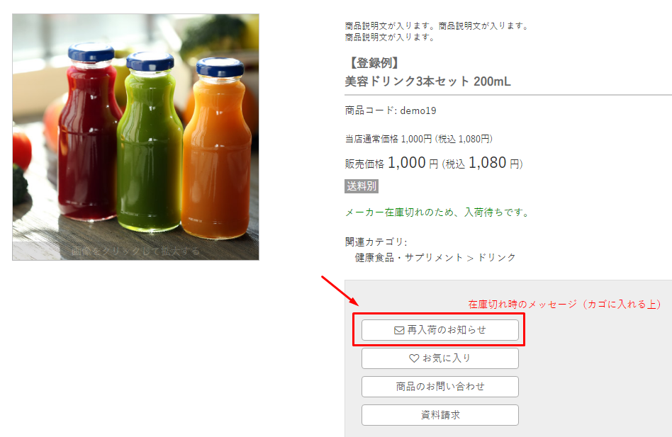 ■商品詳細ページ 【再入荷のお知らせ】ボタン