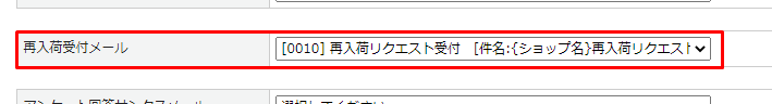 カテゴリが「再入荷お知らせ」のメールテンプレートを登録することで、プルダウンの選択肢に表示されます。