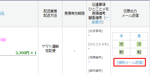 ”その他メール”は、受注>受注一覧 の[個別メール送信]、または、メール送信パネルから送信することができます。