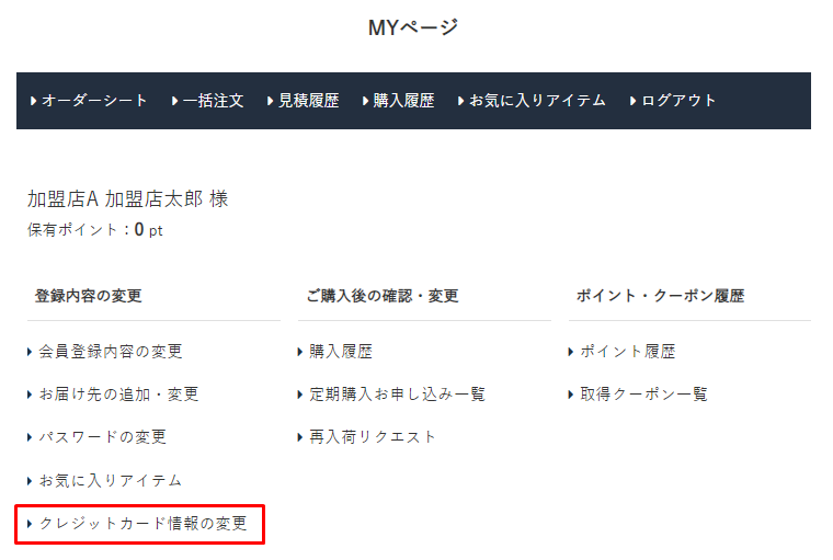 MYページの「クレジットカード情報の変更」から、クレジットカードの登録、または変更した際に送信するメールです。