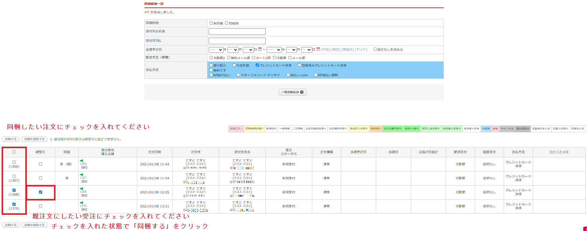 ※表示がされなければ「同梱候補の再表示」で表示されるか確認