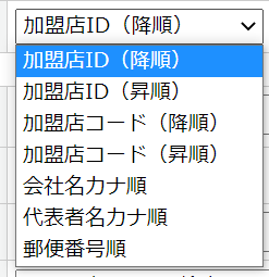 | 加盟店名 | 登録された加盟店名を条件に部分一致で検索します。 |