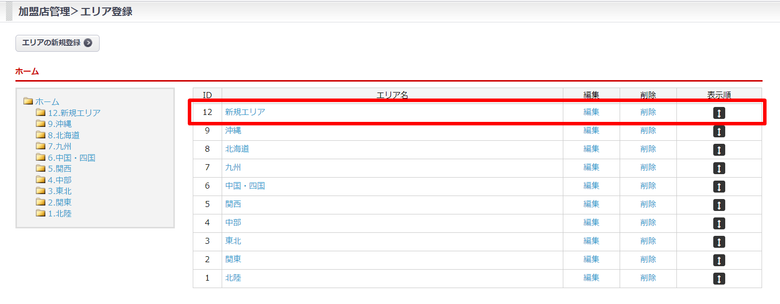 加盟店に紐づけるエリア情報を登録・管理する機能です。