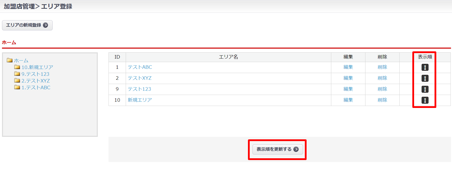 エリアの表示順を変更する