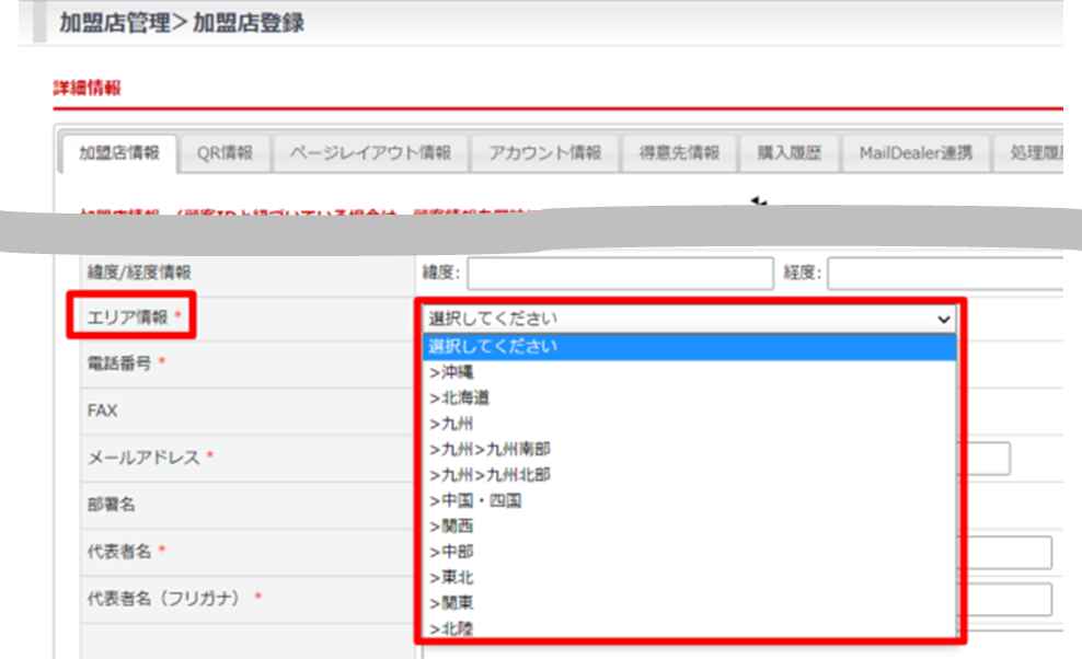 加盟店 > エリア登録 を開く