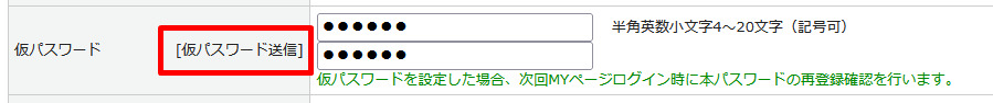 「仮パスワード」欄に任意のパスワードを入力して登録すると、【仮パスワード送信】ボタンが表示されます。