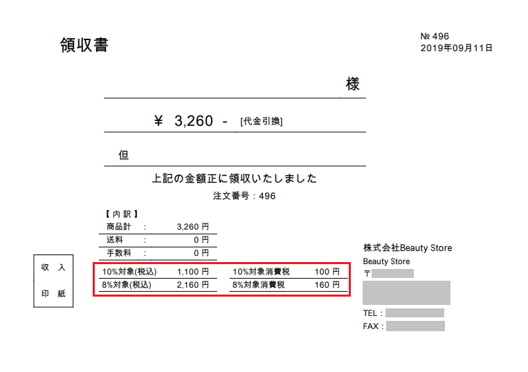 ※商品の税率が8%、送料、手数料の税率が10%のとき
