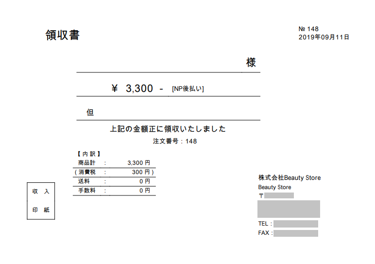 税込価格で入力してください。支払方法設定の詳細は<こちら>