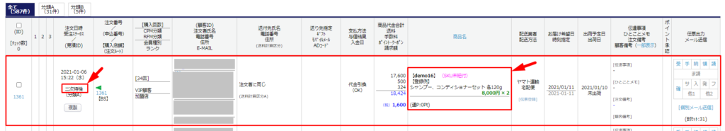 注文完了後アップセル・クロスセル適用後の受注ステータス…”二次待機”