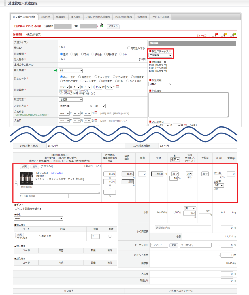 受注データの商品が変更されます。