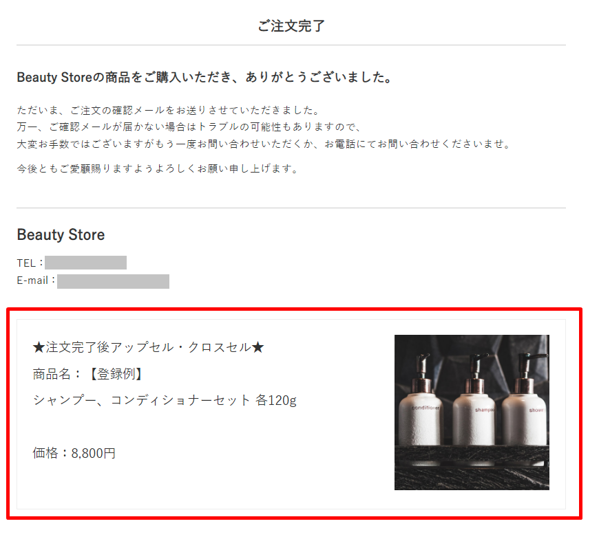 注文完了後アップセル・クロスセル前の受注