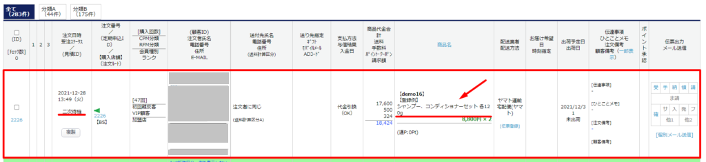 アップセル適用前の注文内容が、お届けサイクルが同じ定期商品を複数購入している場合は表示されます。