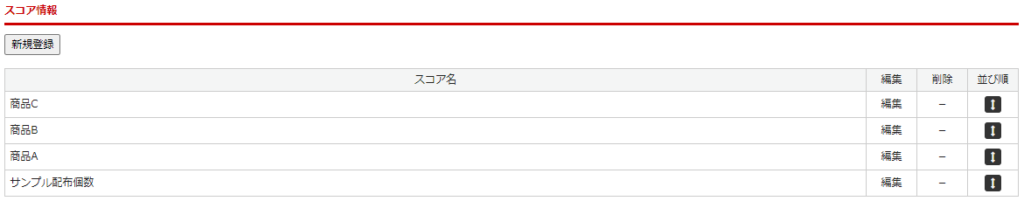 - 営業支援>提案サポート登録のスコア情報よりスコア登録ができます。