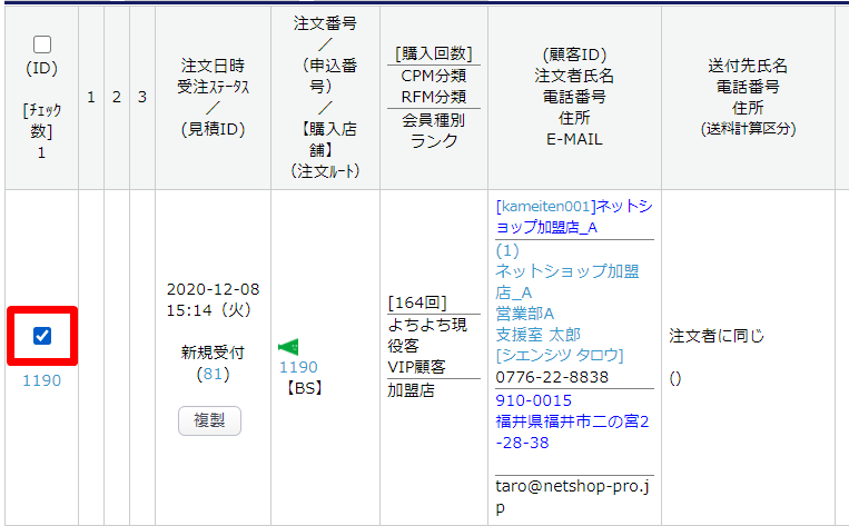 ※営業担当者が設定されている加盟店の注文時、営業担当者がセットされた状態で受注データが作成されます。