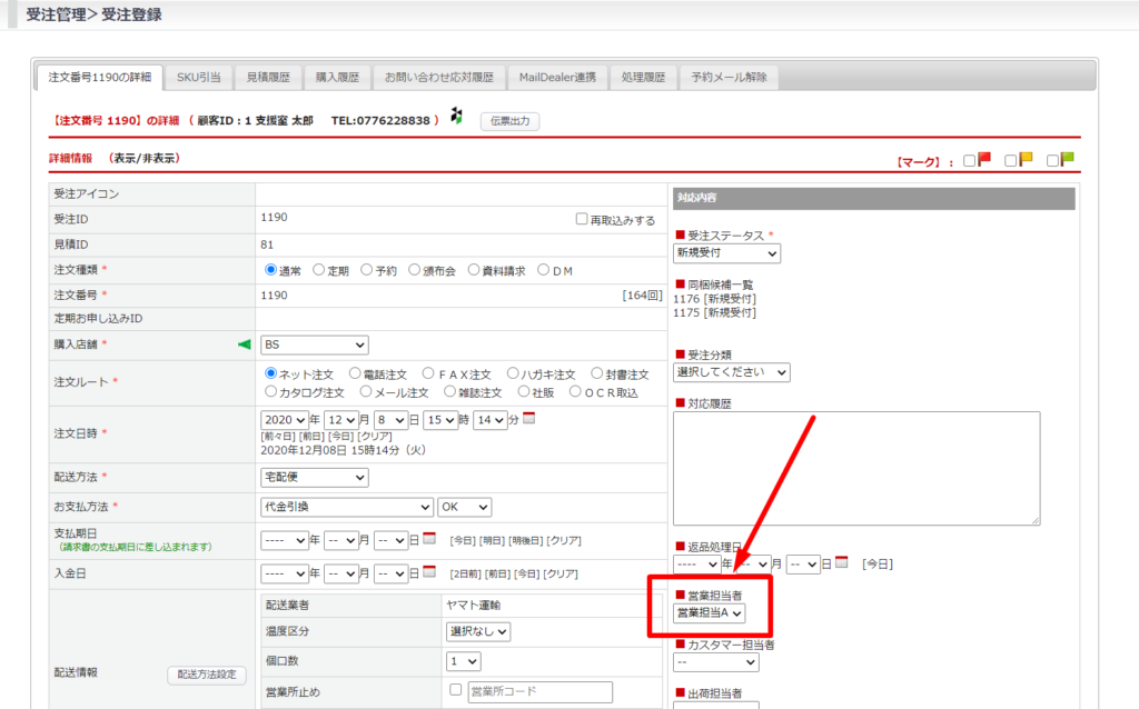 • 営業担当者が設定されている加盟店の注文時、営業担当者がセットされた状態で受注データが作成されます。