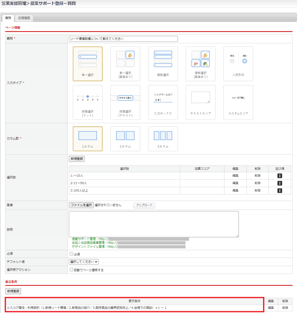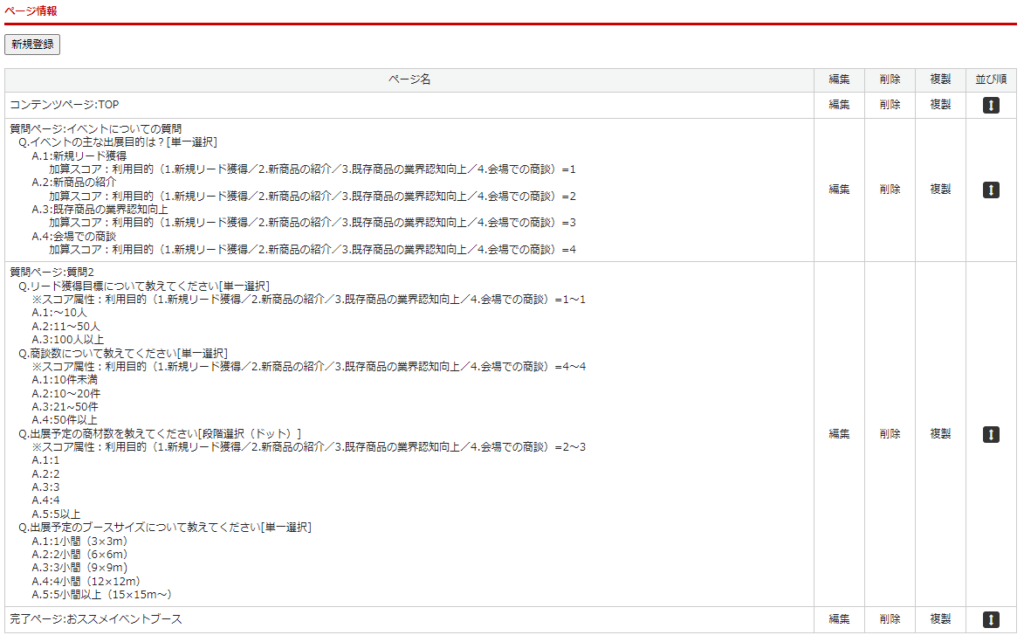 ※「質問」と「表示条件」は、ページ情報登録後に設定ができるようになります。