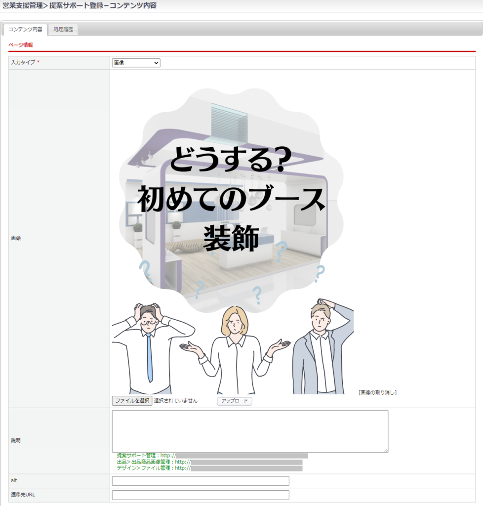 コンテンツ内容登録画面(画像を「入力タイプ」:[画像]で設定)