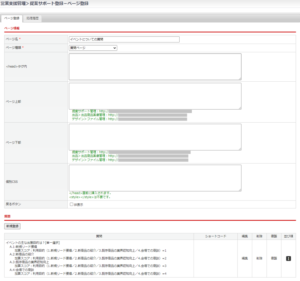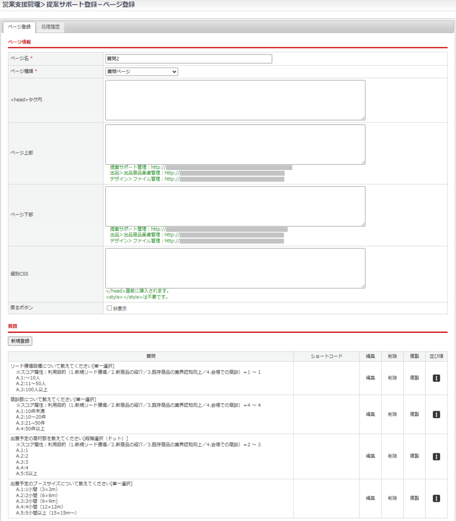 ページ登録 質問の【新規登録】ボタンをクリックし、質問登録画面より登録します。