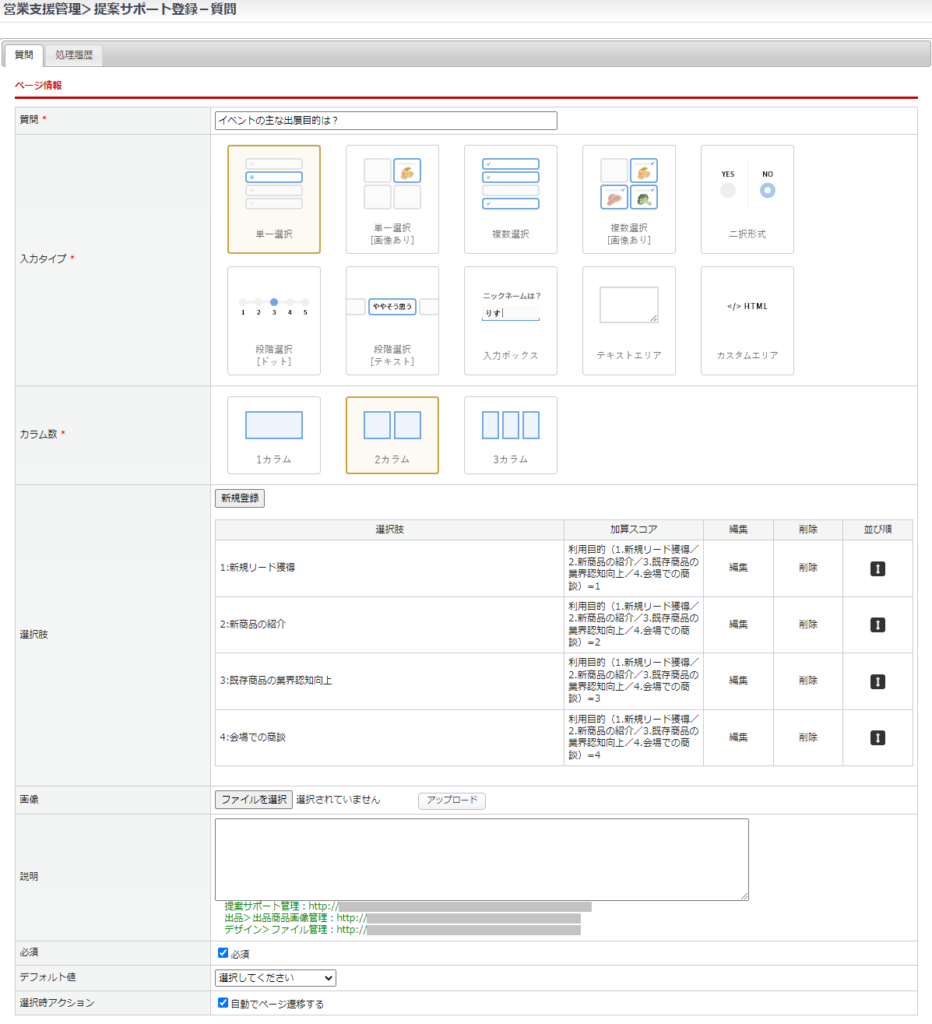 ※選択肢を登録する際、スコア加算値の登録を行うことで、次の質問の内容を変えたり、